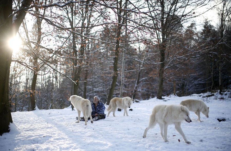 Wolfspark Werner Freund is a wolf sanctuary spread over 25 acres in western Germany. It is home to 29 wolves—six distinct packs hailing from Europe, Siberia, Canada, the Arctic, and Mongolia. Researcher Werner Freund, 79, a former German paratrooper, established the sanctuary in 1972 and has raised more than 70 animals there over the last 40 years. He acquired the wolves as cubs from zoos or animal parks and has reared them mostly by hand. Werner has also taken to living closely with his wolves, behaving as an alpha male to earn their acceptance and respect. Reuters photographer Lisi Niesner recently spent some time with Freund and his wolves, capturing the interactions between these old friends.
